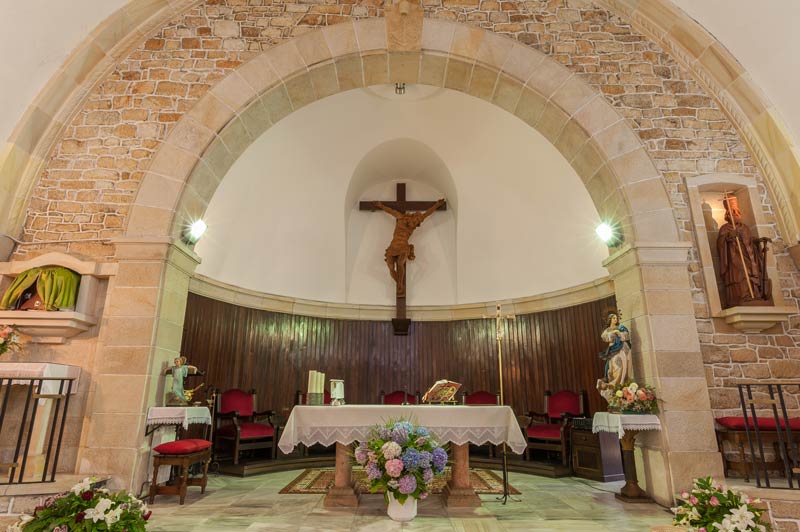 La Iglesia parroquial y los dos cementerios, se encuentran situados en una pequeña loma situada en el barrio de Bernueces, Camino de la Iglesia 32. Su construcción la sitúan en el siglo XVIII, aunque la última reforma y aumento de estructura puede datar del año 1924. Quemada durante la Guerra Civil de 1936, se fue restaurando con la aportación vecinal y con otras pequeñas reformas que se han efectuado a lo largo de estos últimos años, hasta presentar el estado actual.